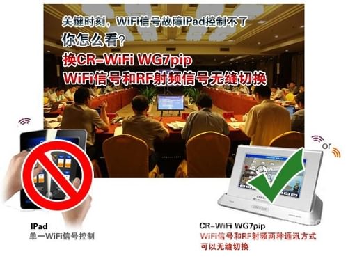 CREATOR快捷CR-WIFI WG7pip專門設計了WIFI和RF射頻控制方式自由切換功能,在WIFI信號受到干擾時,可以馬上無縫切換到RF射頻進行通訊,給您的會議提供雙重保障。