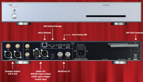 MAN301還具備極高品質的抓取功能,可以完美地把CD復制進301里,另外,WEISS向蘋果公司支付了高額的費用以獲取Itunes龐大資料庫的使用費用, CD進入301后,會自動檢索出相關信息和封面并在IPAD上顯示。CD復制進301以后,能隨時播放,兼顧了便利性和音質。當然301的功能遠不止如此,301也可以播放電腦里的音樂,高規格數字音頻或者電影游戲,甚至網絡視頻球賽,只要通過火線把301和電腦相連即可。