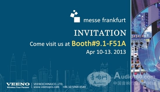 擁有800多年歷史的法蘭克福展覽是世界上最成功、最悠久、最有影響力的展覽會之一。面對已經超過100年的法蘭克福專業音響展會,唯諾安(中國)有限公司于2013年4月10日-13日,將再次秉承“創意”、攜手“未來”,參加這一年一度的專業燈光音響盛會,VEENO歡迎新客戶、老客戶來參與我們的“未來”交流。
