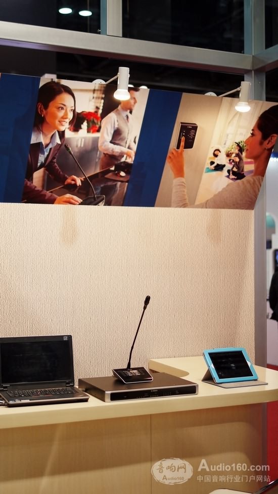 本次展會上,博世隆重推出了其劃時代之作——DCN多媒體網絡會議系統。該系統外形設計優雅且符合人體工程學,其高清的電容式觸摸屏只要用指尖點擊即可為用戶提供最需要的信息。它是世界上首個基于IP并采用OMNEO媒體網絡架構的會議系統,其設計理念核心在于高度的可擴展性,可以隨著用戶需求的改變靈活變化。