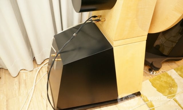 大部分都是高、中音號角,低音一般錐盆設計.No.38的高音單體采用1寸釹磁壓縮式單體,不知是何廠牌,壓縮式單體是號角喇叭的必備,如果不是采用壓縮式單體,味道就稍遜一些了.而中音單體采用130mm直徑的法國Audax傳統錐盆單體,為何不使用壓縮式中音單體呢?我猜成本太高了.至於低音剛才說了,采用380mm直徑錐盆單體,也不知是何廠牌.高音的號角直徑為20公分,中音號角直徑為56公分,高音與中音裝在同一個「柱子」上,背後還有外露的箱室.低音單體單獨裝在一個大箱子,這個大箱子也就是喇叭的底座,但做得很漂亮.箱體底下有很大的低音反射孔往下發射.據豐銘小翁說箱體內部設計很復雜,所以才會那麼重.