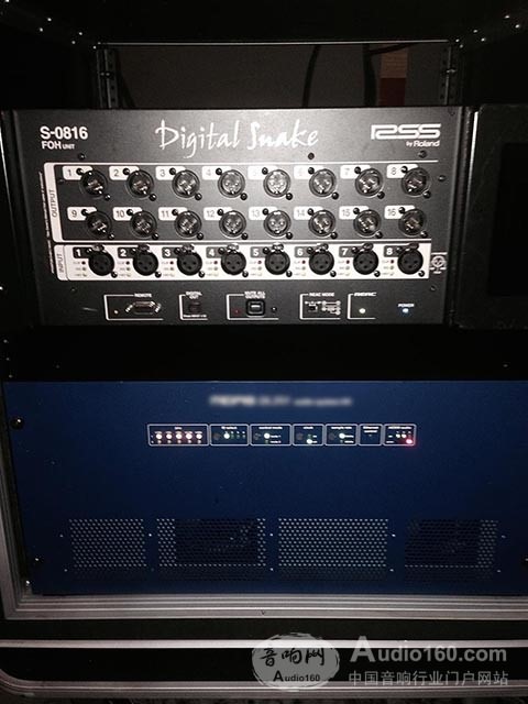 監聽調音臺系統將由Roland M-480調音臺和S-1608數字蛇組成。一臺Midas Pro1調音臺,經過Klark Teknick DN9650傳輸器后,將MADI信號分配給監聽工作組,由Roland S-MADI轉換器轉換為REAC信號后傳輸到M-480調音臺。屆時所有的Shure PSM 900監聽耳機和舞臺監聽音箱都由Roland M-480 V-Mixer調音臺來控制。