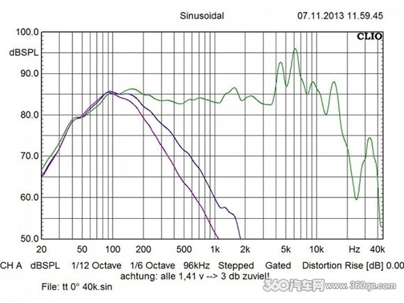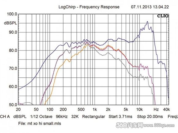 中音單元方面,也有許多細節上的微調.如應用更好的精鑄鋁質盆架,高質量的橡膠懸邊以及微調過的中音防塵帽等.這款喇叭并沒有采用高磁力的釹鐵硼磁路驅動,而是采用釹磁與常規磁路合二為一的磁路系統,因此外觀看起來依然很小;相對于GZPM 80SQX來說,這個3寸的中音它相對又要更小一點點,更易安裝.中音單元最重要的振膜部分,是采用鎂合金音盆,表面陶瓷化處理;盡管這一層僅有千分這幾毫米,但它因此讓中音音盆形成三明治結構,增強了音盆的剛性,并形成多層的阻尼結構.從德國《CAR HIFI》對這款中音喇叭的測試結果來看,這個中音單元的工作頻率可以從150Hz一直延伸到20kHz.音盆的分割振動頻率點分別位于10kHz和20kHz,這也通常已經超出了中頻單元本身的還原頻帶.從整體曲線上來看,這款中音單元在基本工作頻率段150Hz-8kHz都非常平滑,因此有著極好的音樂性.