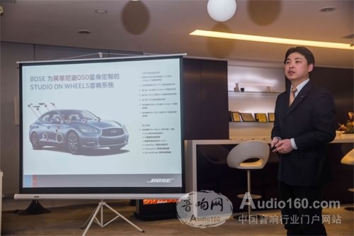 2014年2月17日下午,“英菲尼迪分享匯——感受天籟之音”活動在北京福瑞英菲尼迪旗艦店舉辦。此次活動的主角除了英菲尼迪全新緊湊級豪華車Q50外,還有以聲學(xué)科技見長的Bose音響。Bose在全新英菲尼迪Q50轎車上推出了新一代Studio on Wheels音響系統(tǒng),這套音響系統(tǒng)搭載了多達(dá)14只的高性能揚(yáng)聲器,并應(yīng)用了Bose諸多創(chuàng)新音頻技術(shù)。活動現(xiàn)場,Bose汽車系統(tǒng)技術(shù)產(chǎn)品經(jīng)理孟駿不僅與來賓分享了基礎(chǔ)聲學(xué)知識以及Q50中Bose音響系統(tǒng)的亮點(diǎn),還在全新Q50車內(nèi)為來賓演示了Bose音響的震撼逼真音效。