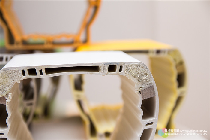 雅瑟董事長蔡連水先生親自向大家解釋T-515的誕生原由,由于木制箱體制程因素,無法大量生產,必須使用人工制造,人力成本占整體成本比例高達六、七成,近年來工資調漲讓造價成本高昂,在不堪負荷之下,蔡董一直在尋找替代材料,能夠取代木制箱體,同時又能夠發出不輸木制箱體的聲音。最后在與工研院的合作之下,嘗試以復合樹脂制造箱體,成功克服塑膠箱體容易產生共振的缺點,才有了T-515的誕生。