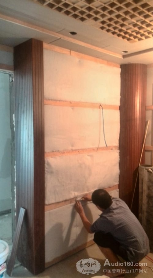 吸音隔音:墻面采用三層復合棉氈14MM+木龍骨+聚酯纖維棉。施工方法:復合棉氈+木龍骨+填充聚酯纖維棉+5厘板打孔+木質吸音板。