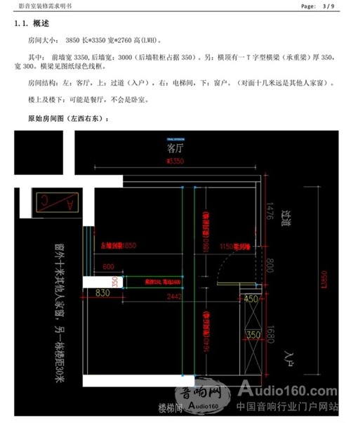 視聽室空間信息: 書房改裝獨立影音室,房間大小:3850*3350*2760(L*W*H)