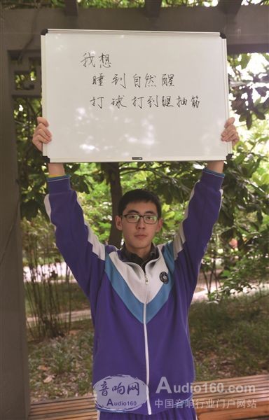 金陵中學(xué)高三(6)班的吳程陽,在記者提供的白板上大大地寫上了“睡到自然醒,打球打到腿抽筋”的字樣,面對著攝影記者的鏡頭高高舉起。而他的同學(xué)楊睿,考后愿望則更加“不走尋常路”,“我是個漢服愛好者,我希望能夠穿著漢服游遍南京城。”