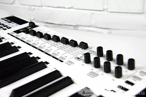 Code 61上配有5個(gè)可分配的的推子,其中包括4個(gè)獨(dú)立的推子和一個(gè)用于控制總線的推子。這些推子可用于進(jìn)行音軌混制、現(xiàn)場控制片段或使用總線推子來制作漸入和漸出效果的操作。在每一個(gè)推子的下面都有一個(gè)音軌按鈕,它們可用于對你工程中的某個(gè)獨(dú)立音軌進(jìn)行靜音和獨(dú)奏的操作。這些功能也非常適合應(yīng)用于現(xiàn)場DJ的工作中。另外,Code 61還配置了4個(gè)旋鈕,它們正如推子一樣,也是可以分配到任何連續(xù)控制器的參數(shù)上。一般來說,一臺MIDI控制器上的旋鈕在絕大多數(shù)的情況下都是用于設(shè)置相位的,那也是它們所默認(rèn)自動(dòng)映射的功能,但這臺控制器上的旋鈕還可以被編輯來控制你的DAW(音頻工作站)中的其他功能。