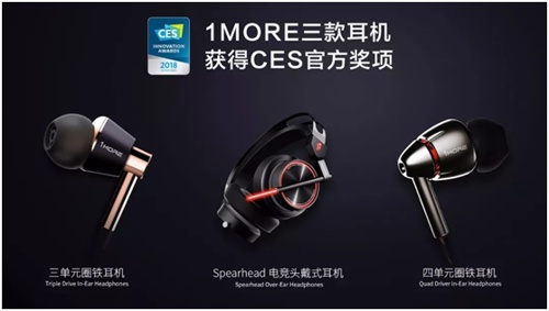 ↑在今年的CES展會上,1MORE3款耳機獲得了官方獎項,是唯一一個獲得3項大獎的耳機品牌