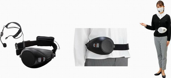 減輕說話者的負擔,傳遞清晰的聲音,減少飛沫的擴散。【簡單的著裝】、【聲音明亮】、能夠解放雙手的便攜式擴聲器。