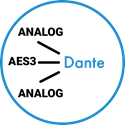 通過動態路由(Dynamic Routing),模擬、AES3信號可被轉換為Dante信號共享至音頻網絡當中。