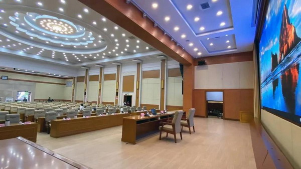 今年5月,懷化迎賓館在設(shè)備更新過程中選用了爵士龍專業(yè)音響設(shè)備。爵士龍工程師考慮到報(bào)告廳場所的建筑結(jié)構(gòu)及迎賓館擴(kuò)聲的相關(guān)要求,制定了科學(xué)合理、性能先進(jìn)、安全可靠的系統(tǒng)解決方案,以效果優(yōu)良的爵士龍K6K7系列有源線陣作為主擴(kuò)聲,搭配音頻處理器、智能時(shí)序器、反饋抑制器等專業(yè)設(shè)備,實(shí)現(xiàn)報(bào)告廳音響系統(tǒng)語言清晰穩(wěn)定、聲場覆蓋具有完好一致性。