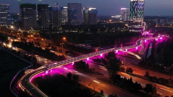 科技四路和天谷六路、七路的人行立交橋結合燈光、激光、投影、音樂、體感互動、聲光裝置等多重科技手段,將光與聲的藝術完美融合,力求打造了舒適、美觀、合理的光影效果。
