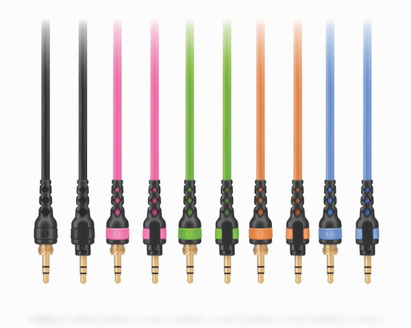 每對耳罩都配有一根 2.4 米的直黑色電線,輕盈又低調,另有 1.2 米款和彩色款(粉紅色、綠色、橙色和藍色)單獨提供。NTH-100 原裝配件包括一個存儲袋、一個用于專業音頻設備的 3.5 毫米至 1/4 英寸適配器,以及一組用于識別電線的彩色 ID 環(與 RØDECaster Pro 和 RØDE Connect 的通道顏色相匹配)。
